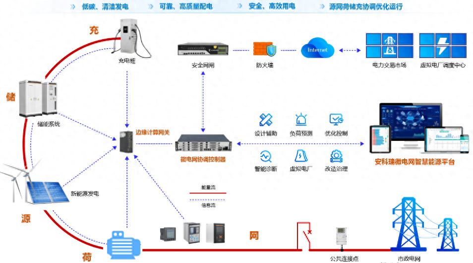 應用層:集成發電預測、經濟調度、碳排管理、智能運維等模塊,通過AI算法動態優化能源策略。