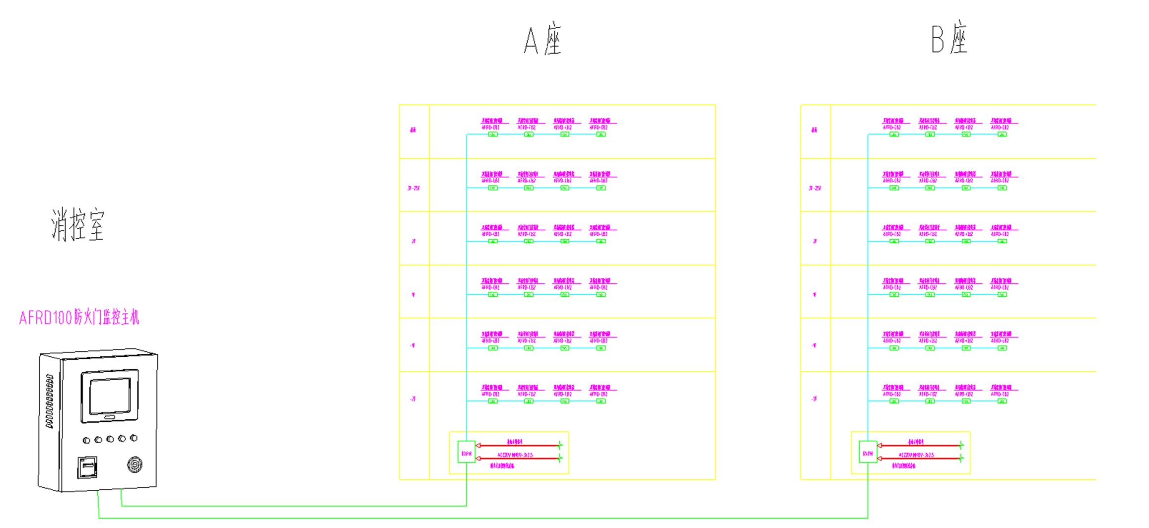 本項目為新疆•首府公館項目,現(xiàn)場各商住樓各樓道樓梯間及地下室區(qū)域的防火門安裝安科瑞AFRD系列防火門監(jiān)控模塊,在現(xiàn)場消防控制室設(shè)置安科瑞AFRD100/B壁掛式防火門監(jiān)控主機(jī),并在各棟樓內(nèi)安裝監(jiān)控區(qū)域分機(jī)實時監(jiān)控各防火門狀態(tài),防止防火門被異常開啟。