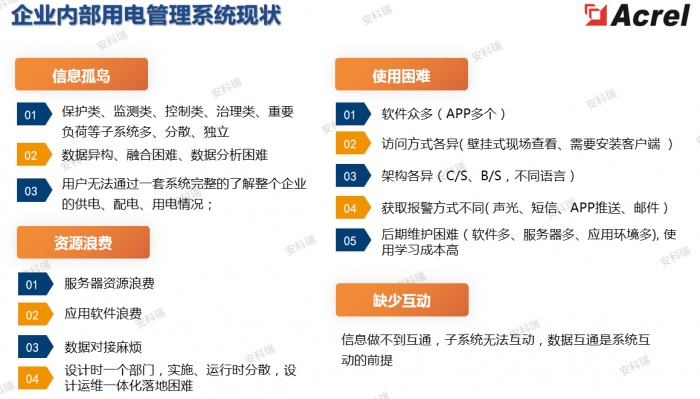 雙碳背景下企業(yè)微電網(wǎng)成為必然要求,但是企業(yè)的現(xiàn)狀難以應(yīng)對(duì)內(nèi)部供配用電結(jié)構(gòu)的改變,企業(yè)需要一套完整全面的一體化管理平臺(tái),實(shí)現(xiàn)企業(yè)微電網(wǎng)的協(xié)調(diào)有序運(yùn)行,同時(shí)要保證企業(yè)用電的可靠、安全、節(jié)約、高效、低碳,要通過(guò)更智能化的手段降低對(duì)運(yùn)行維護(hù)人員的專業(yè)性要求,減輕運(yùn)維成本。