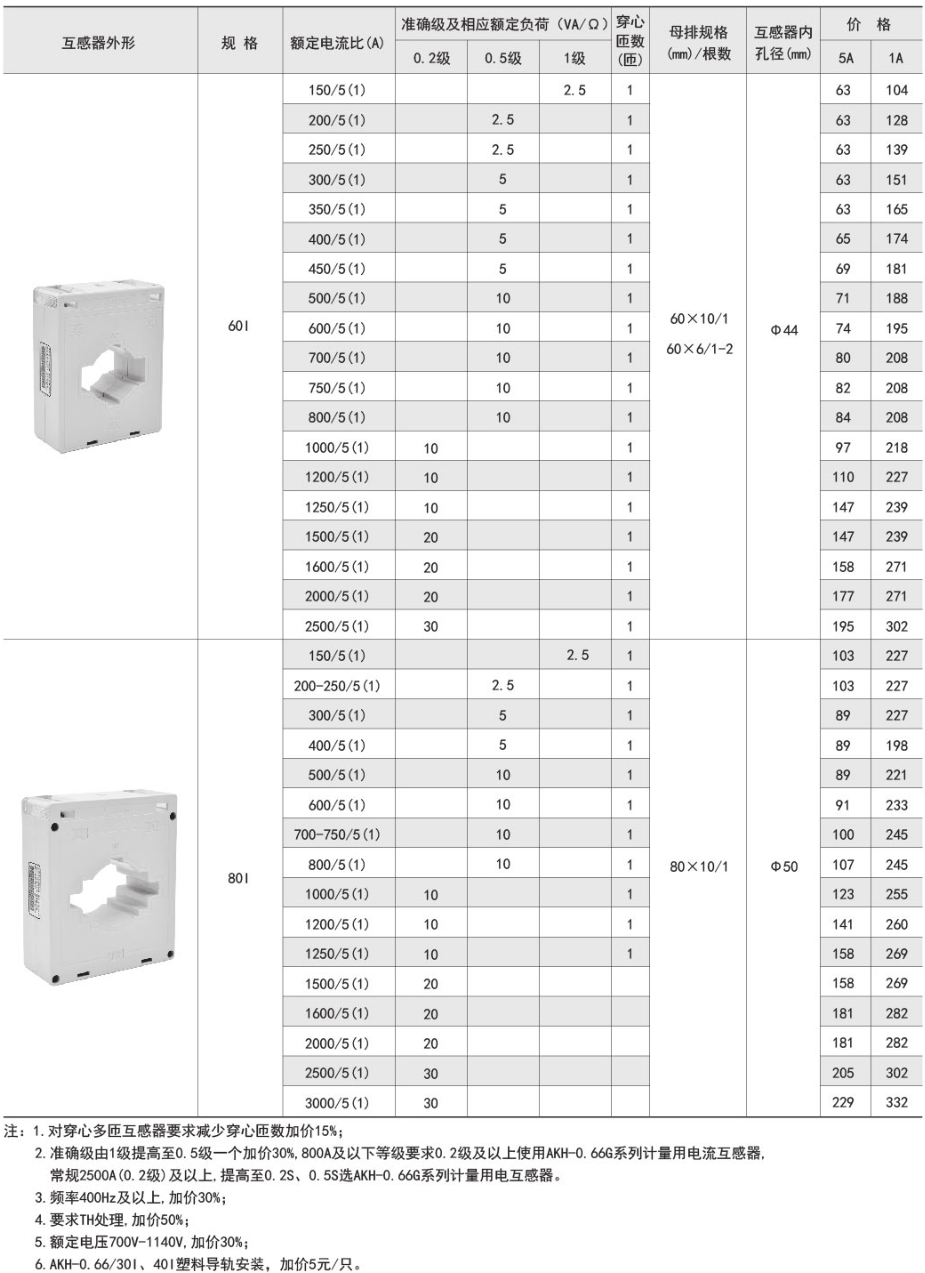 該系列互感器作為交流電流信號采集元件,可與測量儀表配套使用,一次電流測量范圍5-6300A,二次輸出5A或1A,測量范圍為額定值的5-120%。低壓配電系統電流采集具體型號:AKH-0.66/I 30...