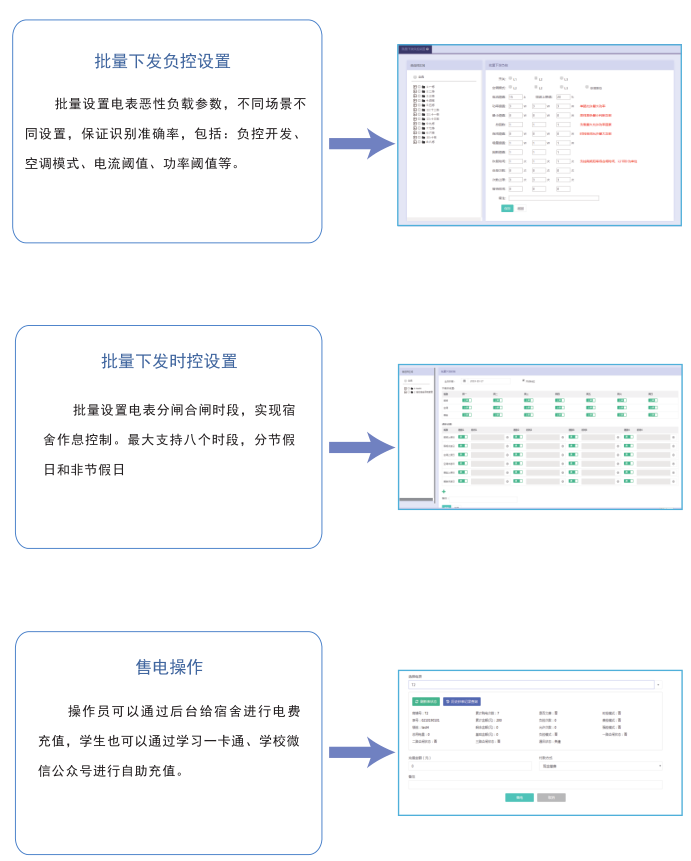 當(dāng)下智慧校園、平安校園的建設(shè)越來(lái)越普及,作為智慧校園建設(shè)的重要一環(huán),學(xué)生宿舍的用電預(yù)付費(fèi)和用電安全管理措施是必不可少的。學(xué)生宿舍預(yù)付費(fèi)電控系統(tǒng)可以解決使用傳統(tǒng)電表人工抄表費(fèi)時(shí)費(fèi)力,不方便統(tǒng)計(jì)管理和 充值的弊端,更是為學(xué)生宿舍的用電安全也提供了解決方案,消除由于使用惡性負(fù)載引起的火災(zāi)隱患。